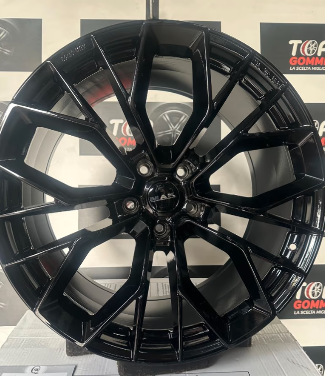 CERCHI IN LEGA REPLICHE PER PORSCHE MACAN NERO LUCIDO ANT. 9X21 POST 10X21 5X112 MOD POWER