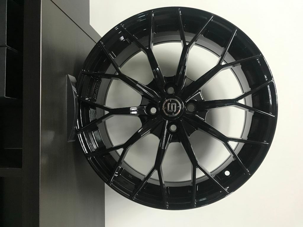 CERCHI IN LEGA REPLICHE PER PORSCHE MACAN NERO LUCIDO ANT. 9X21 POST 10X21 5X112 MOD POWER