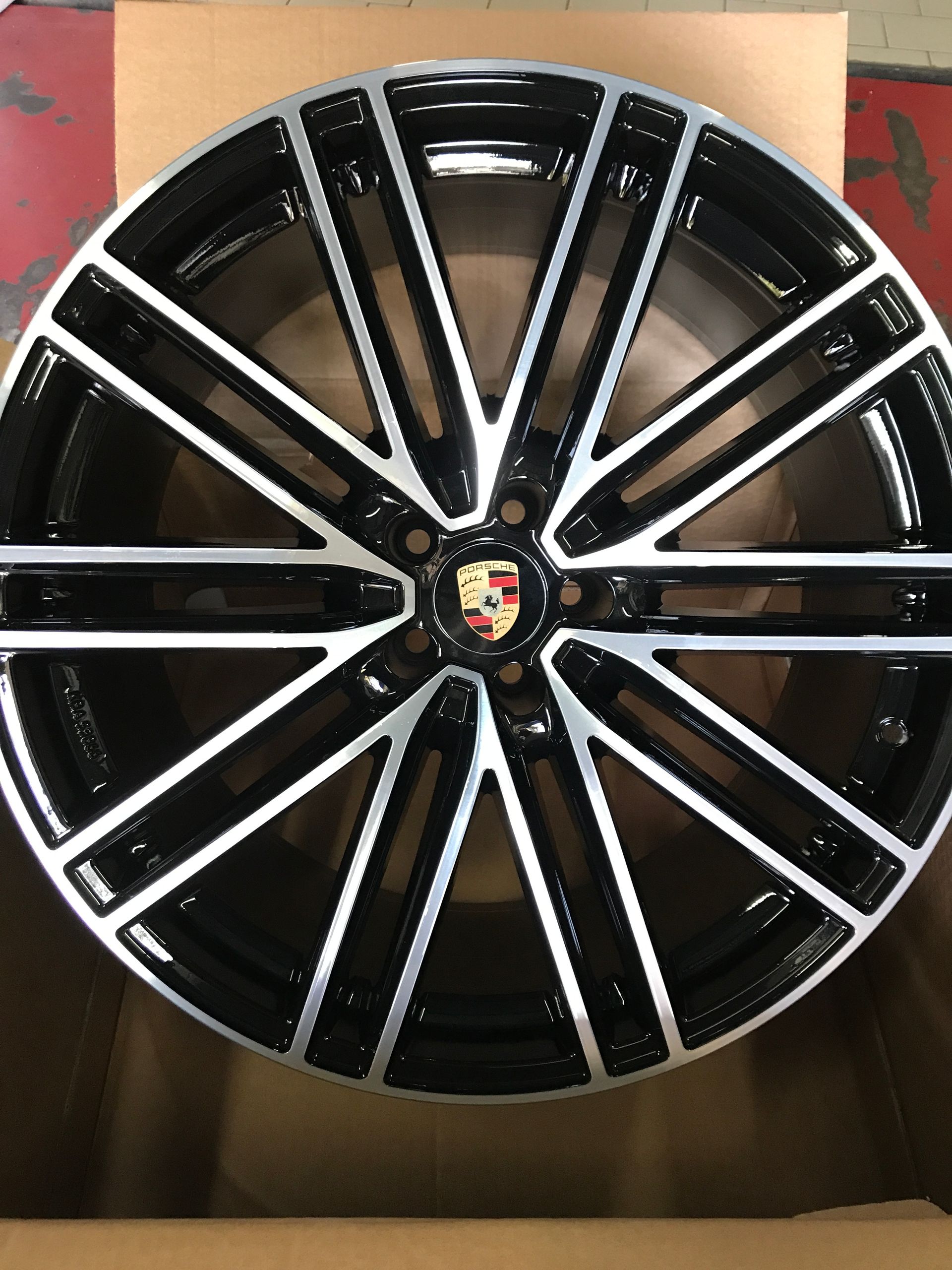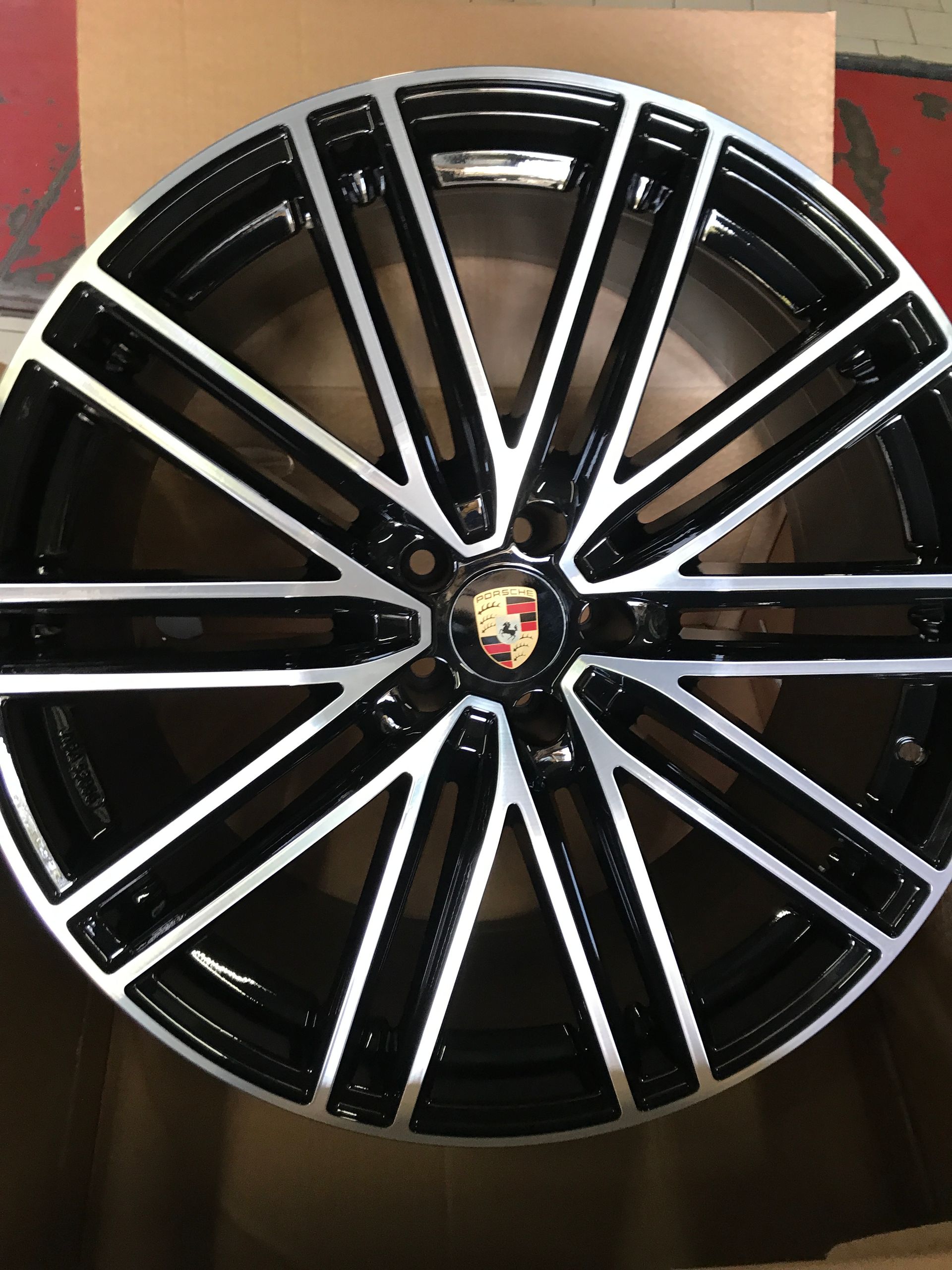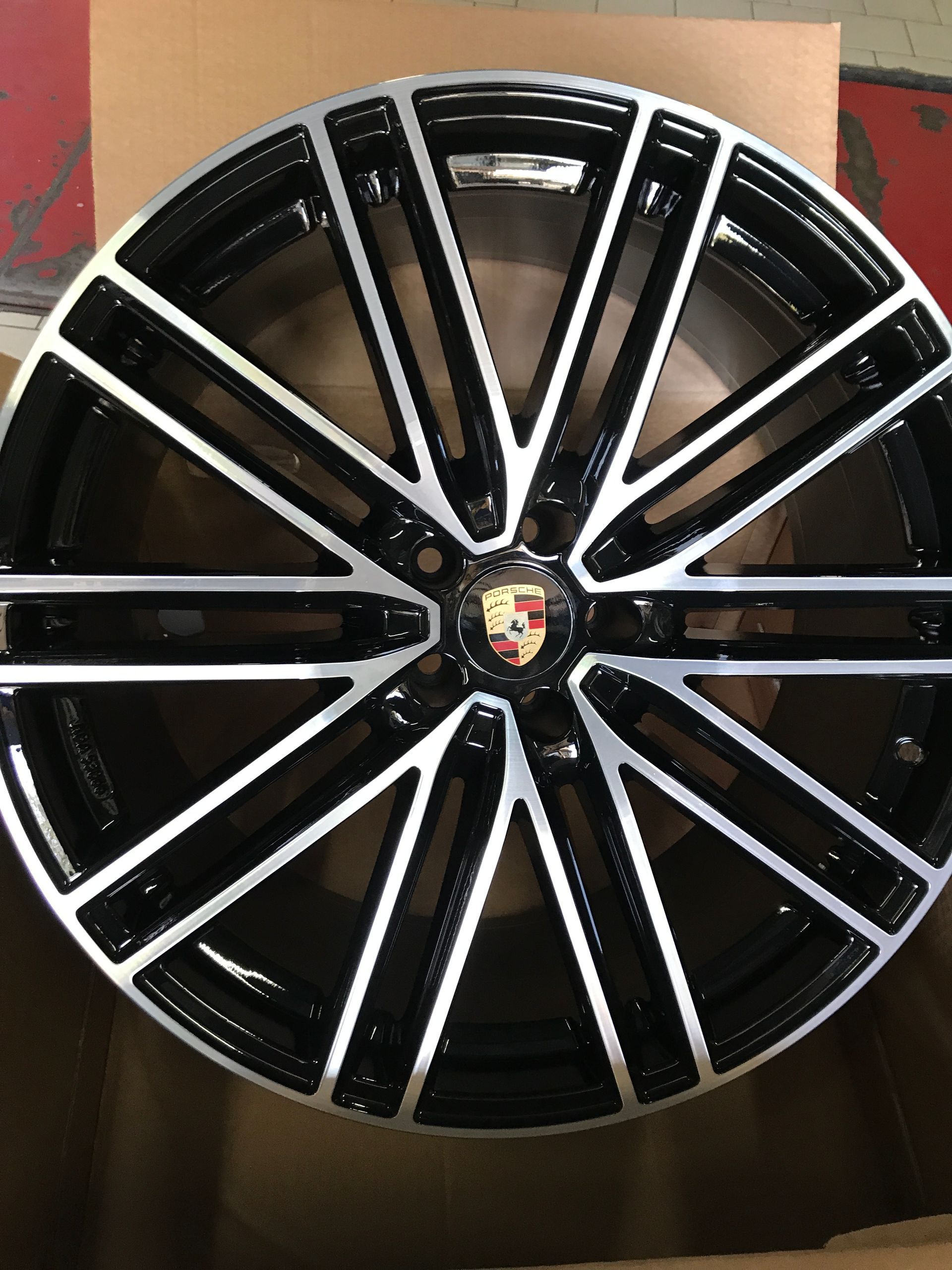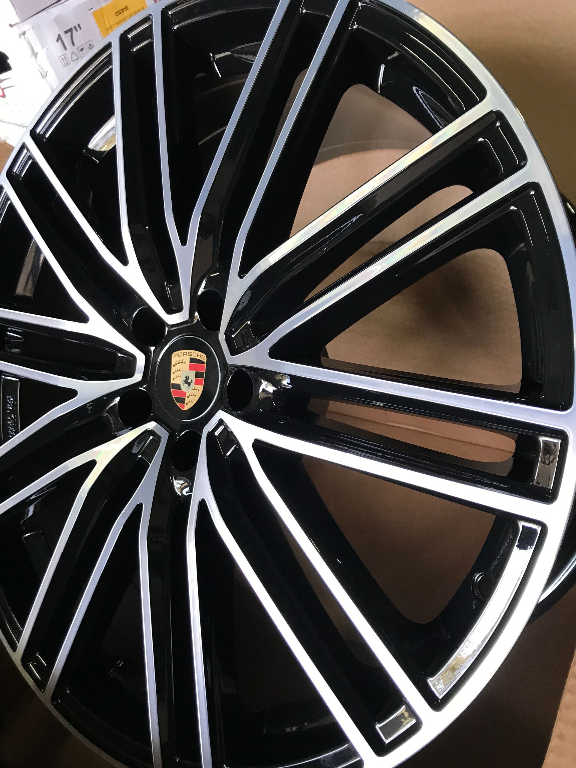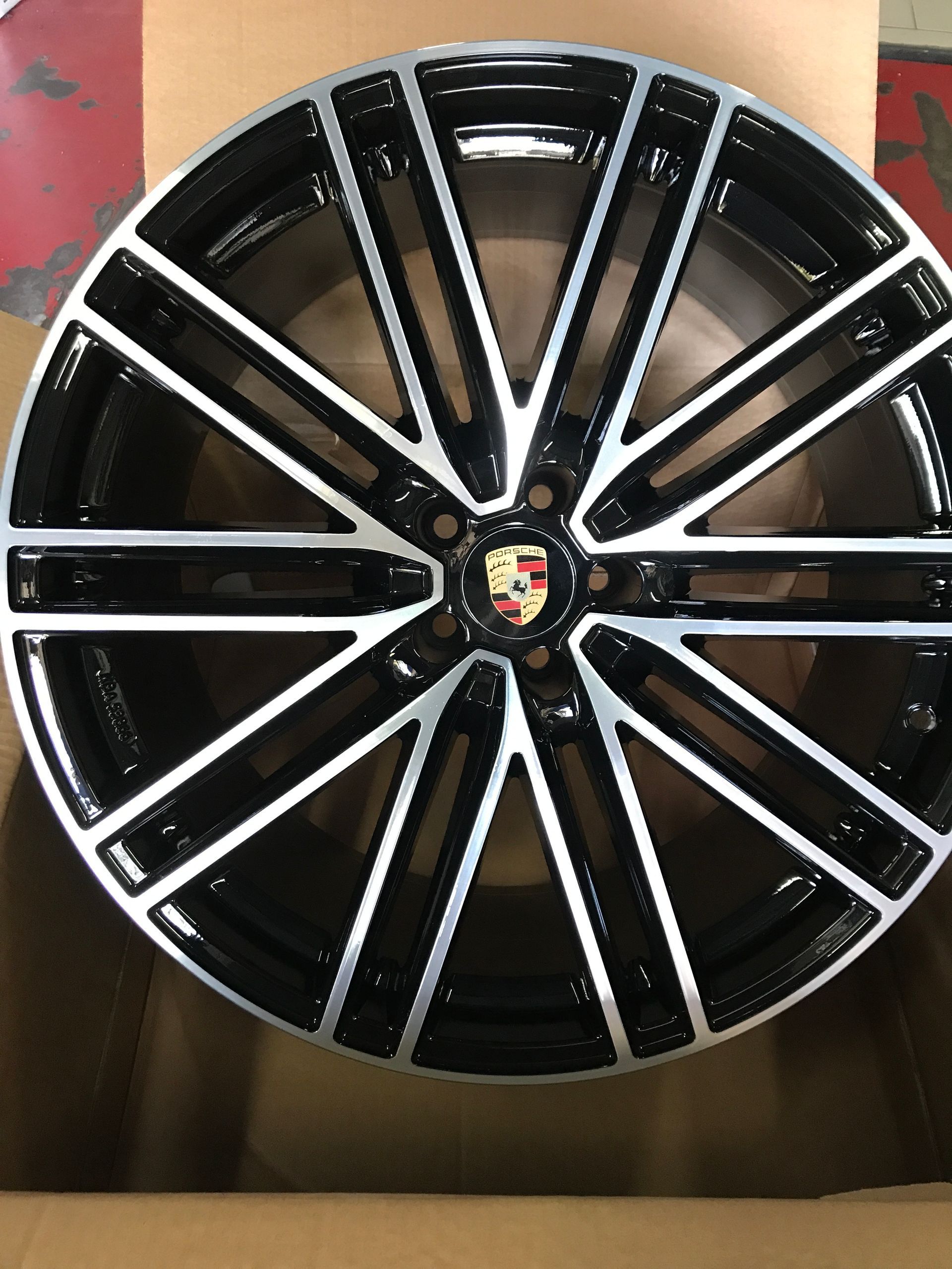 CERCHI IN LEGA REPLICHE PER PORSCHE MACAN NERO LUCIDO ANT. 9X21 POST 10X21 5X112 MOD POWER