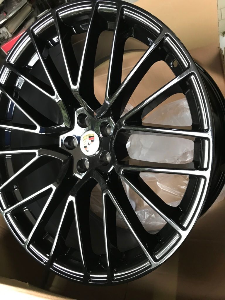 CERCHI IN LEGA REPLICHE PER PORSCHE MACAN NERO LUCIDO ANT. 9X21 POST 10X21 5X112 MOD POWER